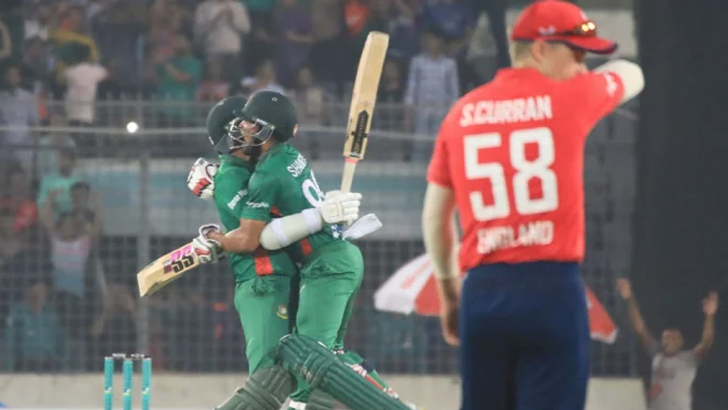 শেষ দিকে জফরা আর্চারের দুর্দান্ত বোলিংয়ে একটু স্নায়ুচাপ তৈরি হলেও মিরপুর শেরেবাংলা স্টেডিয়ামে সিরিজের দ্বিতীয় টি-টোয়েন্টিতে ইংলিশদের ৪ উইকেটে হারিয়ে মাঠ ছেড়েছে বাংলাদেশ। এরে আগে ইংল্যান্ডের বিপক্ষে কোনো ফরম্যাটেই সিরিজ জিততে পারেনি তারা। মেহেদী হাসান মিরাজের অলরাউন্ড পারফরম্যান্সে ঐতিহাসিক সিরিজ জিতল বাংলাদেশ।